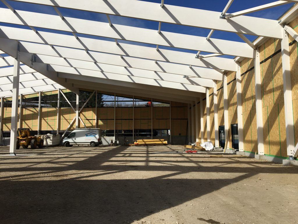 « Nous avons tout d’abord réalisé une charpente en lamellé-collé (cela représente une centaine de m3 de bois).