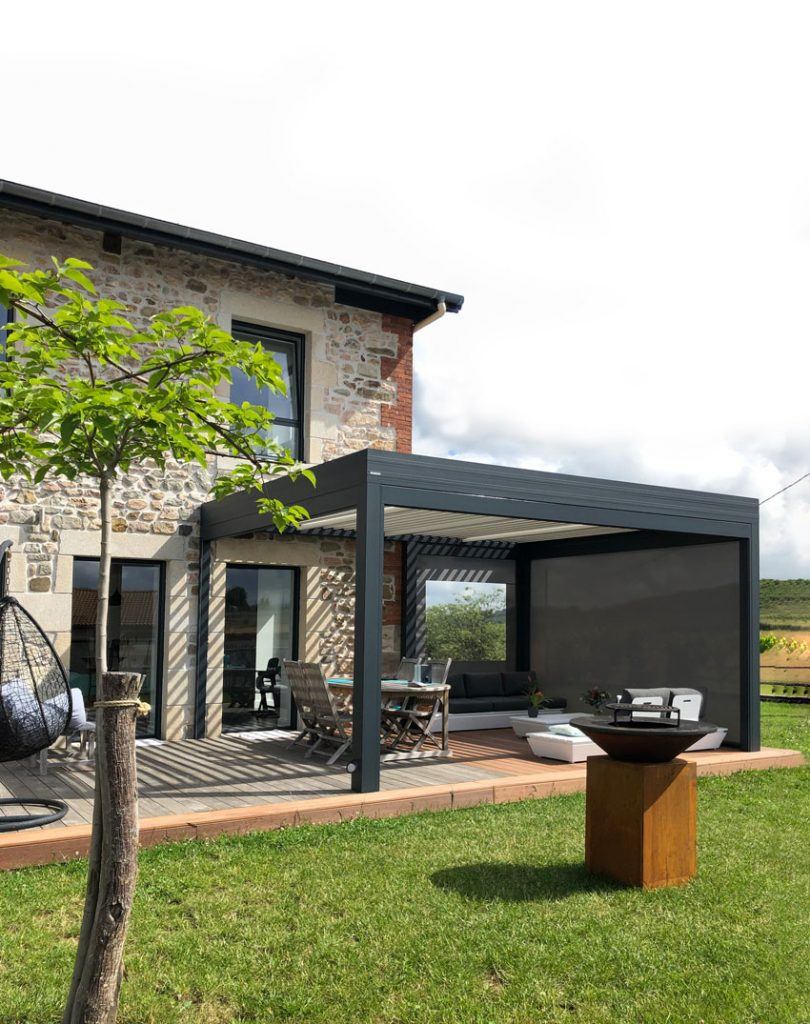Autre aspect intéressant de la pergola évolutive c’est qu’elle peut s’installer en étant accolée à la maison, dans le prolongement d’une véranda voire même complètement indépendante au milieu d’un terrasse ou d’un jardin lui donnant un caractère très contemporain et original.