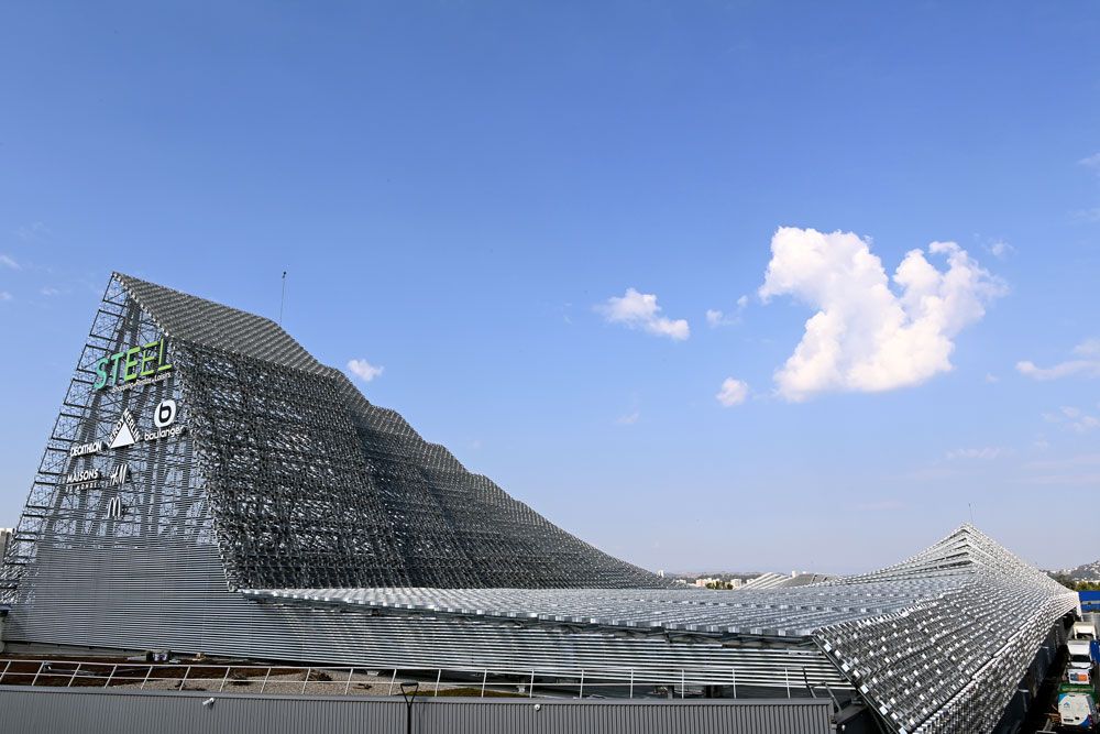 « Nous nous sommes inspirés de la molécule du charbon ». Les designers parisiens, Joran Briand et Arnaud Berthereau, sont les auteurs du motif de la résille qui enveloppe le nouveau centre commercial de Saint-Étienne, Steel. Les atomes de carbone et d’hydrogène ont été sans aucun doute, par leur assemblage dans la composition de l’hydrocarbure, déterminants dans leur création. D’autant que les designers, pour une belle cohérence, cherchaient un lien entre le passé minier de Saint-Étienne et son futur engagé pour le design.